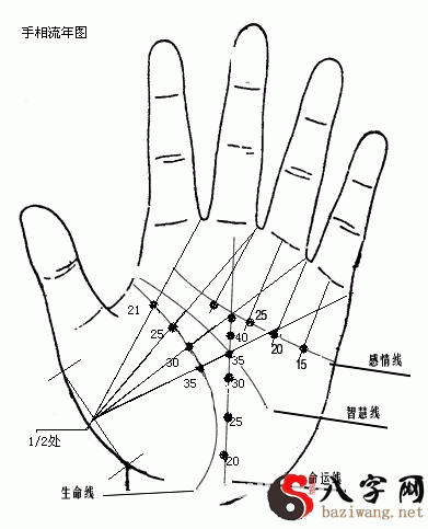 掌纹流年的观点(如图所示)