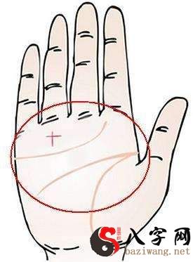 在手心,情感纹和智能化线中间,若有十字形之纹称之为神秘十字纹表明喜爱研究哲学思想、风水玄学、宗教信仰的事。