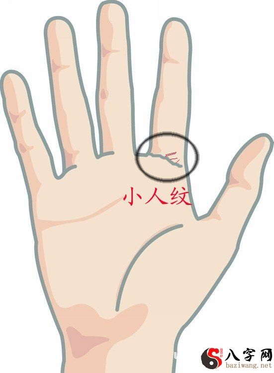 在左手无名指和小拇指指缝间下斜斜的两花纹,表明这人会有言究写作的才可以。能够从业研究或创作美术绘画,一定有造就。