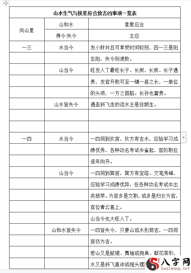 第一.理气大门口、动惩处向星为主导星,相匹配于附注中的水得令或水失 令。